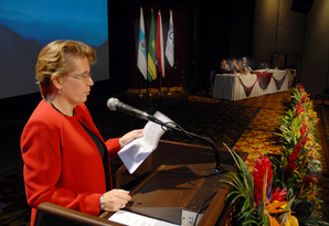 Gabriela Marin, directora de la Maestria en Informatica de l a UCR reconocio el trabajo de la organizacion de la conferencia que por primera vez se realiza en Costa Rica y agradecio a los patrocinadores. (foto: Luis Alvarado Castro)
