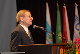Marcelo Jenkins sub director de la ECCI dio la bienvenida a los participantes en la Conferencia Latinoamericana de Informatica. (foto: Luis Alvarado Castro)