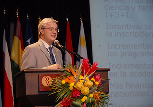 Los ex rectores de la Universidad de Costa Rica Gabriel Macaya Trejos y del Instituto Tecnológico de Costa Rica Alejandro Cruz durante la conferencia inaugural expusieron la Estrategia siglo veintiuno, visión de la ciencia y tecnología en Costa Rica. La estrategia incluye un diagnóstico de la ubicación del país en comparación con 144 naciones en aspectos de ciencia y tecnología, una visión y un plan de acción con proyección al 2021, año en que se cumple el bicentenario de vida independiente de Costa Rica.